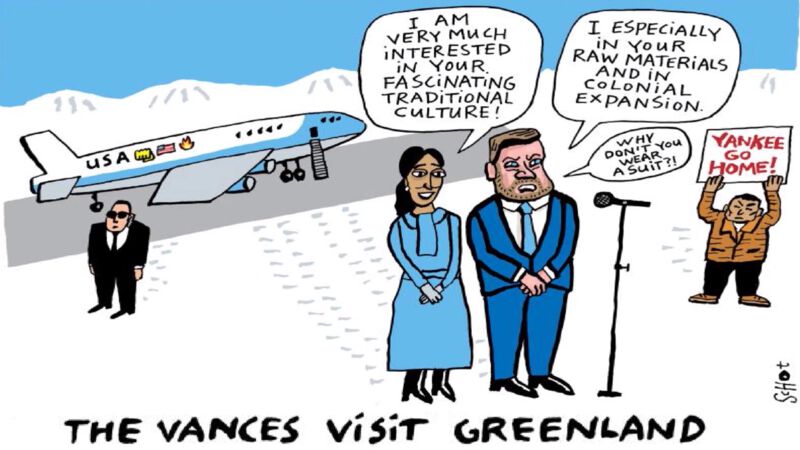 Миссионеры Трампа Венс Джеймс Дональдович и Венс Уша Кришевна (Уша Бала Чилукури) приехали в Гренландию принимать её капитуляцию, чтобы установить статус Гренландии как колонии США.