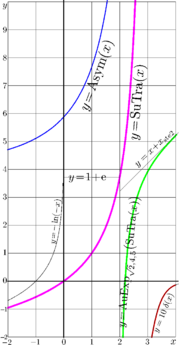 | 10:28, 5 February 2026 | SuTraAsy3plotT.png (file) | 22 KB | {{oq|SuTraAsy3plotT.png|Original file (737 × 638 pixels, file size: 22 KB, MIME type: image/png)|360}} ==Summary== Explicit plot of function SuTra of real input, pink curve \(\ y=\mathrm{SuTra}(x) \ \) and its asymptotics. SuTra is superfunction for the Trappmann function \( \ z\mapsto z\!+\!\exp(z)\ \).<br> Function SuTra is specified as «Entire Function with Logarithmic Asymptotic».<br> It is described in book «Superfunctions»<ref name="book"> https://mizug... | 1 | |