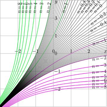 In this expression, parameter $n$ also has no need to be integer. Once holomorphic functions $F$ and $G$ are established, the function can be iterated even complex number of times. For a given transfer function $T$, the establishment of the superfunciton $F$ and the Abel function $G$ is not trivial, but solvable problem. It had been formulated in 1950 by Helmuth Knezer [5] for iterates of exponential, the half-iterate of the exponential appears in the title of his article. In century 21, superfunctions of various funcitons had been calculated, allowing the non-integer iterates. The iterates of Factorial are plotted in figure 2; and those for the exponential [6][7]; are shown in Figure 3. Then, the formalism had been extended to other functions [8][9][4], in particular, to the exponentials to other bases, factorial and the logistic sequence.