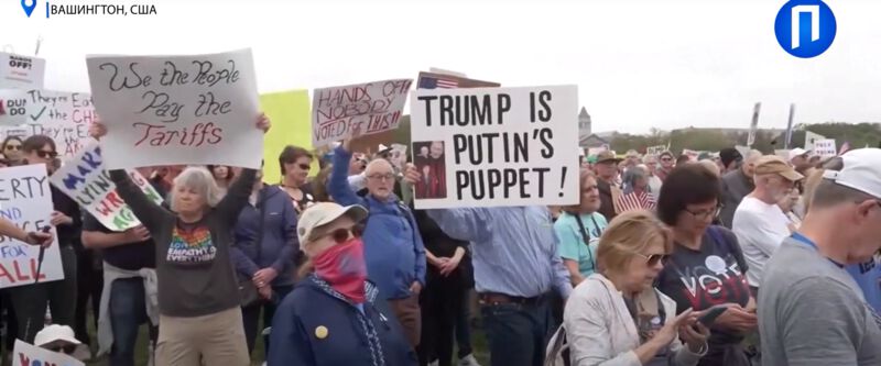 | 21:05, 6 April 2025 | 2025.04.06.protestWashington800.jpg (file) | 45 KB | {{oq|2025.04.06.protestWashington800.jpg|}} «Trump is putin's puppet» Protest at Washington 2025.04.05 Screenshot from movie <ref> https://www.youtube.com/watch?v=UFft7o4_EXw&t=118 2025.04.06. 4,973 views • Premiered 77 minutes ago • #Подробиці #сша #протести У США — наймасштабніші протести за час президентства Дональда Трампа. Тисячі людей у Вашингтоні, Лондоні, Парижі та Берліні вийшли на вулиці з вимогою зупинити згортання демократії та свавільну економічну політику. Протестувальники зв... | 1 | |