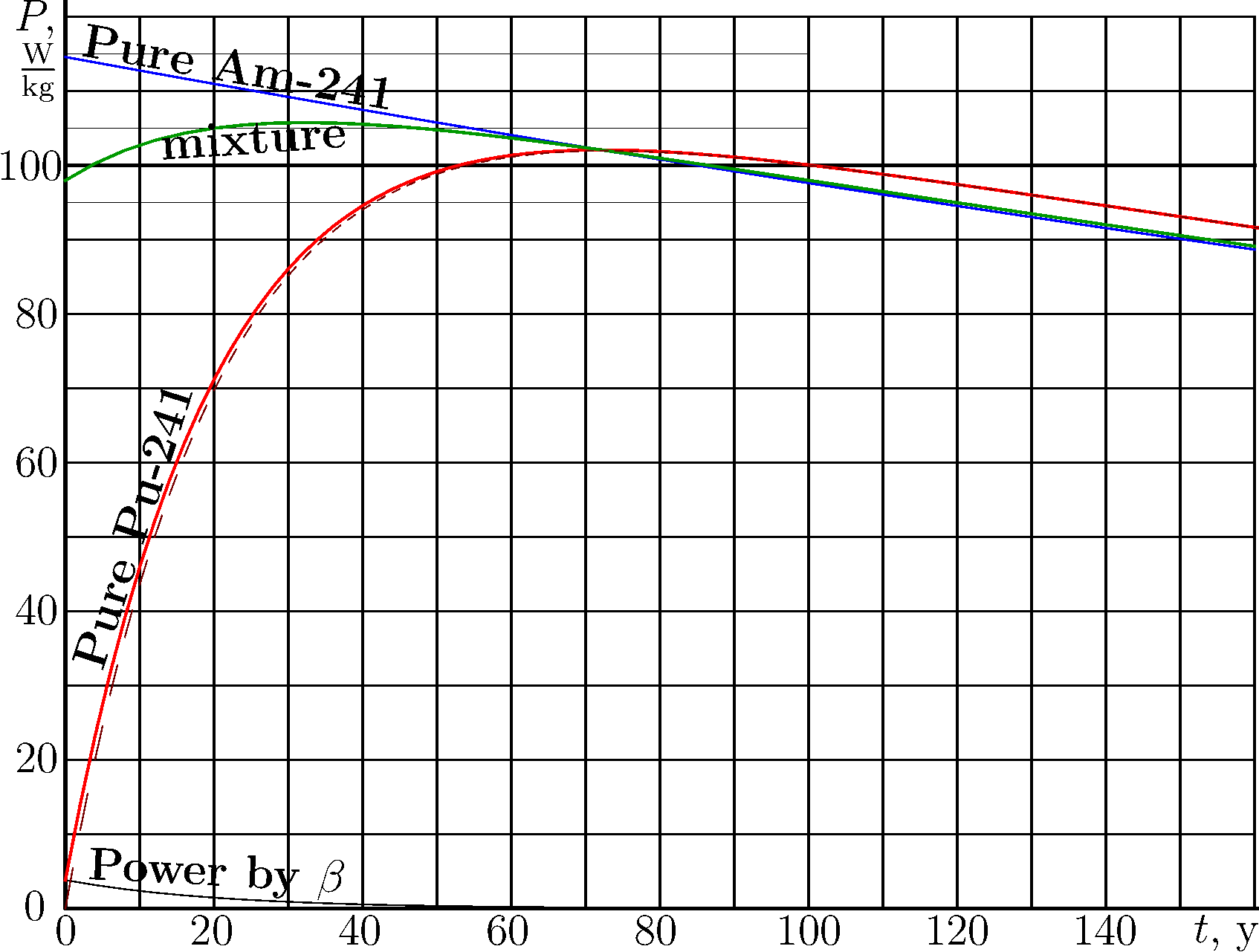 | 18:30, 28 June 2025 | G17t1694x1281.png (file) | 34 KB | {{oq|G17t1694x1281.png|}} Power of relaxation heat power per kg of mixture of Am-241 and Pu-241 versus time for varios cases. The mixture refers to initial concentation 85% of Am-241 and 15% of Pu-241 ==Description== ==C++ generator of curves== // file ado.cin should be loaded in order to compile the code below. <pre> #include <iostream> #include <cmath> #include <iomanip> //using namespace std; #define DB double #include "ado.cin" DB ln2 = log(2.0); DB T1 = 14.33... | 1 | |