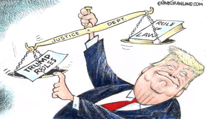 Revision as of 08:12, 4 April 2025 by T (talk | contribs) ({{oq|TrumpLawScr720.jpg|}} Prudence by Donald Trump Screenshot from movie <ref> https://www.youtube.com/watch?v=N2jlt-9EMFc&t=258 MARCH 28 Funny American Political Cartoon - Breaking News - USA Politic Caricature - Trump Satire ameriCArtoon Mar 29, 2025 MANHATTAN 🎨 Welcome to the ameriCArtoon ! In this video, we bring you the top political satire and funniest cartoons covering today's breaking news in American politics. From Trump to Biden, and everything in between, our talented cart...)