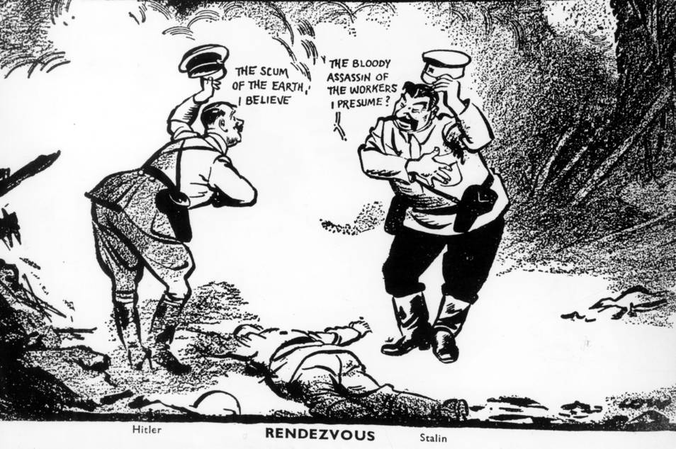 - ↑ https://www.reddit.com/r/PropagandaPosters/comments/q13ogg/rendezvous_evening_standard_cartoonist_david_low/?rdt=63038 r/PropagandaPosters icon Pwysch "Rendezvous", Evening Standard Cartoonist David Low gives his thoughts on the Molotov-Ribbentrop Pact following the Invasion of Poland. UK, 20th September 1939.