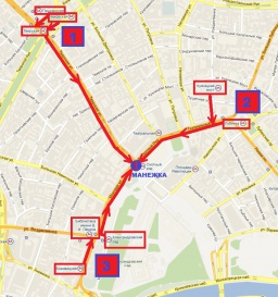 1. Подать заявку на проведение митинга 6-го мая в 19-00 на одну из центральных площадей Москвы: Манежную площадь или площадь Революции. Если Оргкомитетом будет принято решение проводить марш, то он должен закончиться в вышеуказанных местах сбора.
