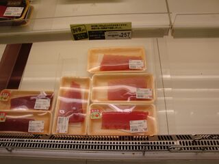 Supermarket at Mitaka 2015.02.03: Red fish 100g for 257 yen