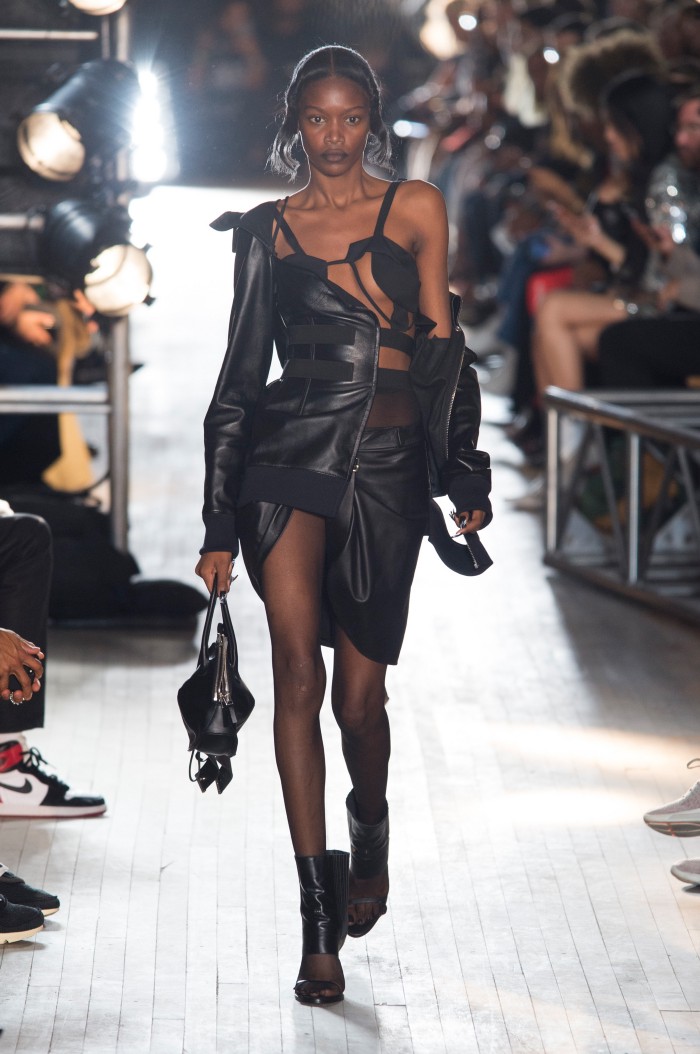 We saw it with Helmut Lang’s runway look. A big mishmash of lines that confuses your brain. You don’t know where to look, because every cut takes you in a different direction. 2018 is about not being boring — it’s about being complicated and thinking outside of the lines.