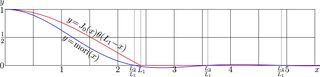 $y\!=\,$mori$(x)\!=\!$ $\displaystyle \frac{J_0(L_1 x)}{1\!-\!x^2}$ , blue line.