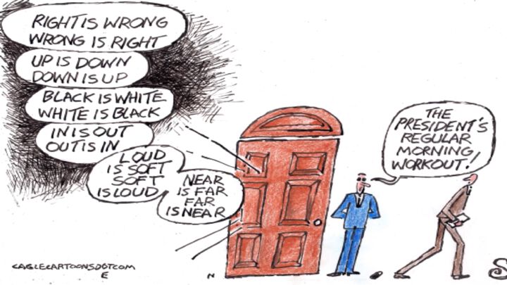 | current | 01:43, 8 March 2025 | 720 × 405 (57 KB) | T (talk | contribs) | == Summary == {{oq|TrumpWorkout720x405.jpg|}} Donald Trump practices in Newspeak. Screenshot from movie <ref> https://www.youtube.com/watch?v=3PQpVUHU0IM MARCH 2 Funny American Political Cartoon - Breaking News - USA Politic Caricature - Trump Satire ameriCArtoon Mar 3, 2025 MANHATTAN Welcome to ameriCArtoon , the channel where we bring out the humor and satire in politics with creative, entertaining cartoons! In this special episode, we explore the post-Election Day scenario in th... |