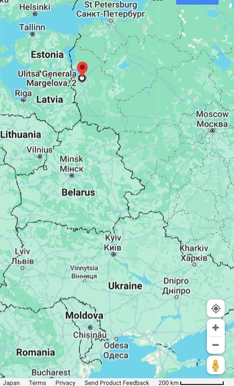 Also, for some reason, address Ulitsa Generala Margelova, 2 appears at the left hand side from Pskov (overlapping with Estonia and Latvia), while at the map, there is a lot of space at the right hand side from Pskov.