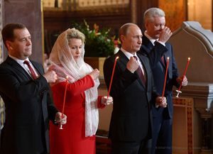 - ↑ http://rimona.livejournal.com/1883590.html Римма Поляк. Пасхальная композиция. Дмитрий Медведев с супругой Светланой, президент РФ Владимир Путин и мэр Москвы Сергей Собянин в Храме Христа Спасителя на пасхальном богослужении 5 мая 2013 г. 2013-05-06 06:05:00. .. “Владимир Владимирович, мы с вами немножко как пидары на венчании выглядим”. ..