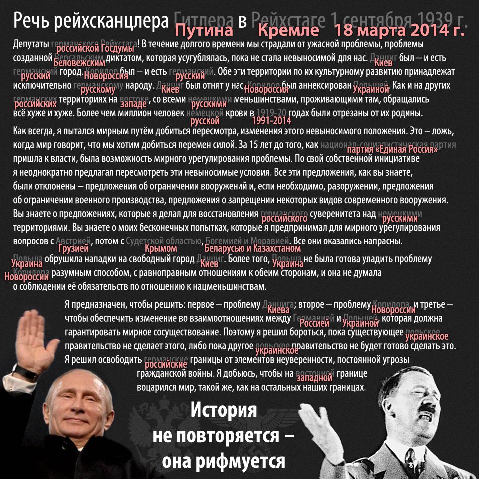 | + | Специально для тех, кто считает сравнение Путина с Гитлером необоснованным. |