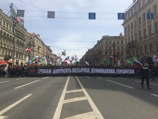 | + | Andrey Pivovarov. Требуем допросить Кадырова, Делимханова, Геремеева - сегодня через весь Невский. 2:25 AM - 1 May 2015. |
