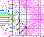 | 10:02, 17 January 2026 | Z2sin1zMapT.png (file) | 118 KB | T | {{oq|Z2sin1zMapT.png|Original file (1,933 × 1,124 pixels, file size: 118 KB, MIME type: image/png)|400}} Complex map of function \(f= z \mapsto z^2\sin(1/z) \ \). Notation: \( u+\mathrm i v = f(x\!+\!\mathrm i y)\ \); levels \(u=\mathrm{const}\) and levels \(v=\mathrm{const}\) are drawn. The conditional asymptotic \( z \mapsto 0\ \) takes place at \( z \to 0 \ , |\Im(z)|<\Re(z)^2\) : \[ \lim_{z\to 0,\ |\Im(z)|<\Re(z)^2 } f(z)=0 \] Range \(|y|<x^2\) in the map is shaded. The [[unco... | 1 | |