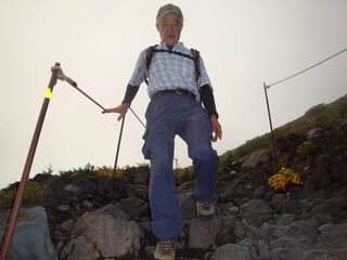 2016.09.26.Fuji climb: Isao Okamoto walks down.