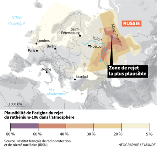 - ↑ http://www.lemonde.fr/les-decodeurs/article/2017/11/21/ruthenium-106-l-accident-nucleaire-en-russie-en-3-questions_5218265_4355770.html Mathilde Damgé. Ruthénium 106 : l’accident nucléaire en Russie en trois questions L’origine des traces radioactives, trouvée dès le mois d’octobre grâce à une méthode de modélisation française de pointe, a été niée en bloc pendant un mois par la Russie. 21.11.2017 à 19h46.