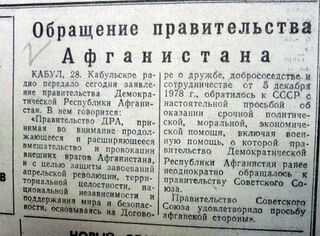 | current | 22:07, 2 February 2019 | 910 × 671 (131 KB) | T (talk | contribs) | 1979.12.25 советское вторжение в Афганистан. Советская газета от 1979.09.28 с заявлением о том, что руководители Афганистана просят начать прот... |