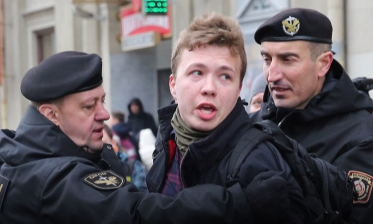 - ↑ https://www.bbc.com/news/world-europe-57219860 Belarus 'diverts Ryanair flight to arrest journalist', opposition says. A Ryanair plane from Greece to Lithuania was diverted to Belarus for several hours on Sunday, with activists saying it was done to arrest a dissident journalist on board.// European nations reacted with outrage, accusing Belarus of "state terrorism".// The ex-editor of the Nexta group, Roman Protasevich, was detained before the plane was allowed to resume its flight.// Belarus media said a MiG-29 escorted the jet to Minsk because of a bomb scare but no explosives were found.