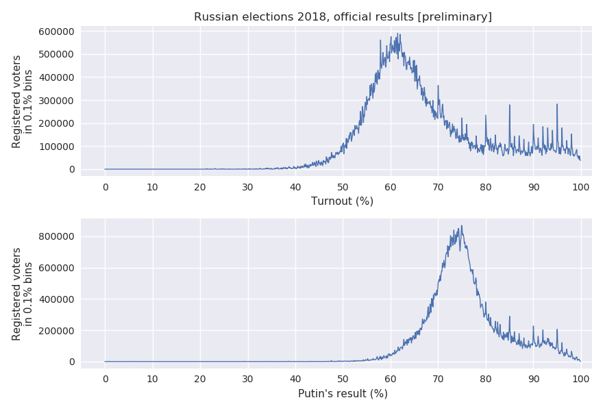 - ↑ https://kobak.livejournal.com/111535.html Dmitry Kobak (kobak) wrote, 2018-03-19 11:17:00. пики 2018. Сергей Шпилькин прислал свежевыкачанные с сайта ЦИК данные. Вот как выглядят в этом году пики. (Историю вопроса см. в https://projecteuclid.org/euclid.aoas/1458909907)