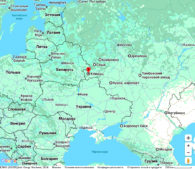- ↑ https://www.google.co.jp/maps/dir/Воркута,+Респ.+Коми,+Россия/Тамбовский+пороховой+завод/Шайковка/Моздок/Аэропорт+Ейск/Ахтубинск/Дягилево/Сеща/Курск,+аэропорт/Клинцы/@53.8034473,27.3736507,4z/data=!3m1!4b1!4m62!4m61!1m5!1m1!1s0x448773449b7ed8d5:0x50cf754907bb3f95!2m2!1d64.0602175!2d67.4968967!1m5!1m1!1s0x413940b7c4f171af:0xdfab7e42c21fd6dd!2m2!1d41.5073156!2d52.5934554!1m5!1m1!1s0x46cce5f1ea519d59:0xf0a6213c0091340!2m2!1d34.3795866!2d54.243787!1m5!1m1!1s0x4050e02fdb806431:0x338ccf125fcac738!2m2!1d44.6487252!2d43.7454564!1m5!1m1!1s0x40e42ef274806d03:0xf97bc90ab9c97800!2m2!1d38.2526357!2d46.6960493!1m5!1m1!1s0x4105f4c33956f199:0x2508c74f1489f70f!2m2!1d46.1718889!2d48.2838171!1m5!1m1!1s0x4149e2cc43f9d90d:0x1ac0ec4b8a74a6c9!2m2!1d39.6301686!2d54.6576213!1m5!1m1!1s0x46cd7bda7f36c50f:0x8c0208b0a92d8d4d!2m2!1d33.3332803!2d53.7322394!1m5!1m1!1s0x412f03c000000001:0xb433bae910f891dc!2m2!1d36.2825398!2d51.7494193!1m5!1m1!1s0x46d36d3d115dc63f:0x265ff7162ccd84ae!2m2!1d32.2566693!2d52.7566164!3e2?hl=ru&entry=ttu