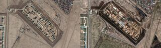 Engels Arsenal (at East side of the Engels Airbase (Авиабаза Энгельс)) before (left) and after (right) the Engels2025.03.20.bavovna.