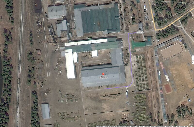 ChitinskiBronetankovy at the Yandex map [1], zooming at the main assembling hangar.