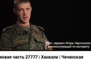 | 12:59, 18 March 2026 | ChertopolohIgor756x486.jpg (file) | 35 KB | T | == Summary == {{oq|ChertopolohIgor756x486.jpg|}} Чертополох Игорь (Chertopoloh Igor), сотрудник Вч 27777, Ханкала. Подозревается в организации пиратских атак на пассажирские самолёты, см.«Кадыров сбил Ембраер». Screenshot from movie <ref> https://www.youtube.com/watch?v=d-z96c3MKtI&t=496 Войсковая часть 27777 | Ханкала | Чеченская республика | Военная служба ВОЕННАЯ СЛУЖБА \ АРМИЯ \ КОНТРАКТНИК Aug 15, 2019 18-я отдельная гвардейская мотострелковая Евпаторийская Красноз... | 1 | |